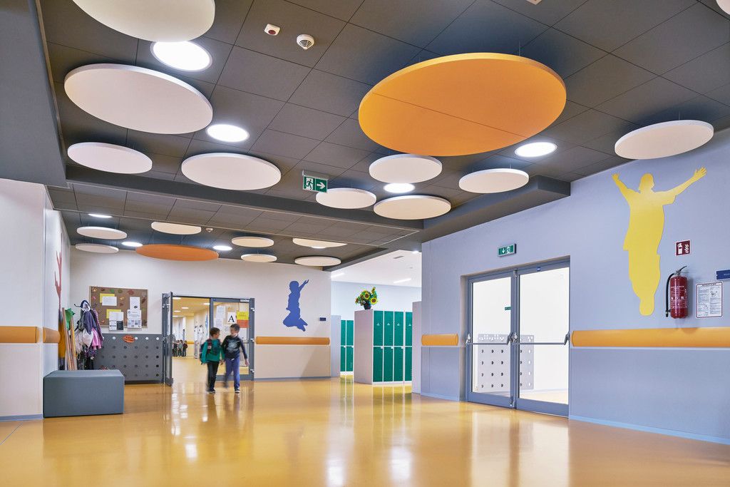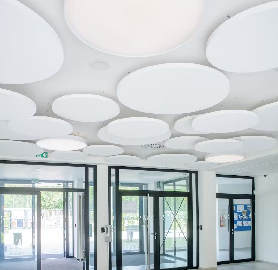 De akoestische Eclipse panelen absorberen geluid aan beide zijden, waardoor de nagalmtijd en het geluidsdrukniveau in de ruimte worden teruggedrongen.